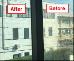 【キレイで安全な窓ガラスに】パッと見ただけでは貼られていることが分かれないほどキレイにフィルムが密着しています。地震発生時にもガラスが飛散せず、フィルムによってはさらに断熱効果や防犯効果があるものもあります。キレイで安全、快適な空間をつくります。