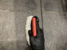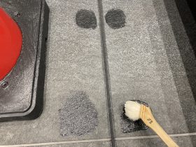 ブラッシング、洗浄、汚水除去をし、乾燥させます。1回の塗布で抜けない場合は再度洗剤塗布から乾燥までを繰り返します。写真は除去後の写真です。