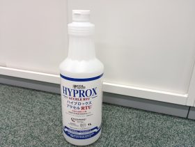 汚れを取り除く為、今回は『加速化過酸化水素水』を使用しました。 人体や環境・素材へのダメージも少なく、医療施設や福祉施設でも使用されています。