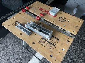 次に、スピーカーの留め金具を作製します。 設置場所によって留め金具の大きさが変わるので、その場で作製することが多いです。